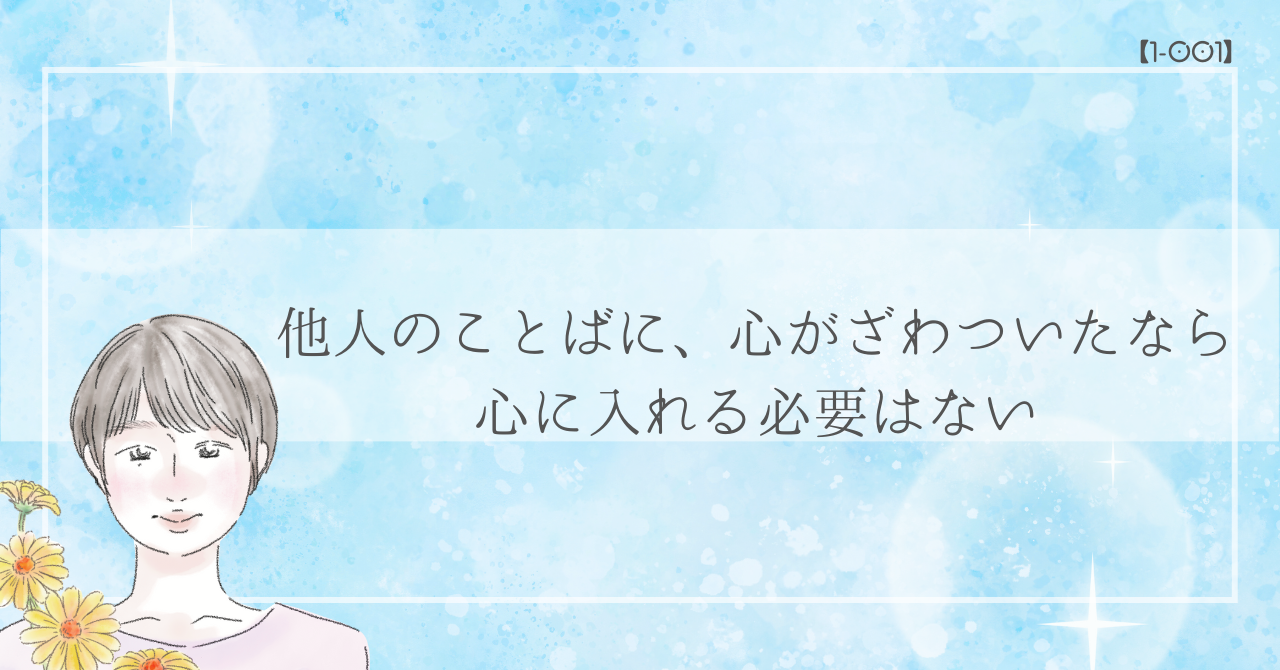 【1-001】のことだま→『他人のことばに、 心がざわついたなら、心に入れる必要はない』とは?